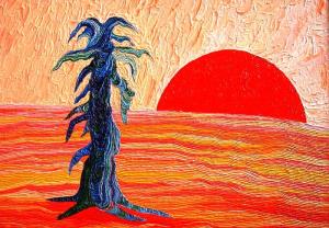 mista, Polistirolo inciso a caldo,dipinto con acrilici e colori ad olio cm 168 x 58